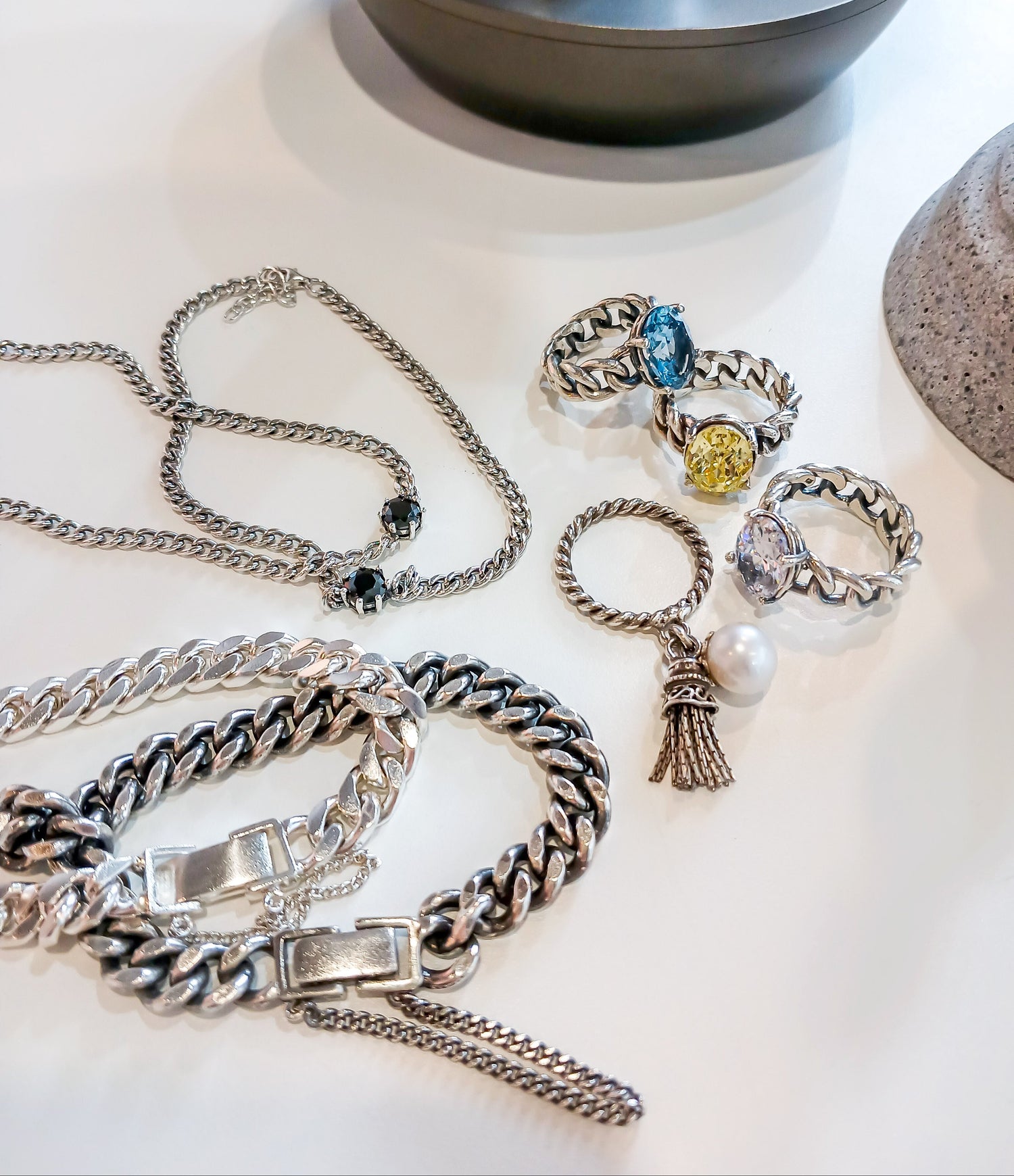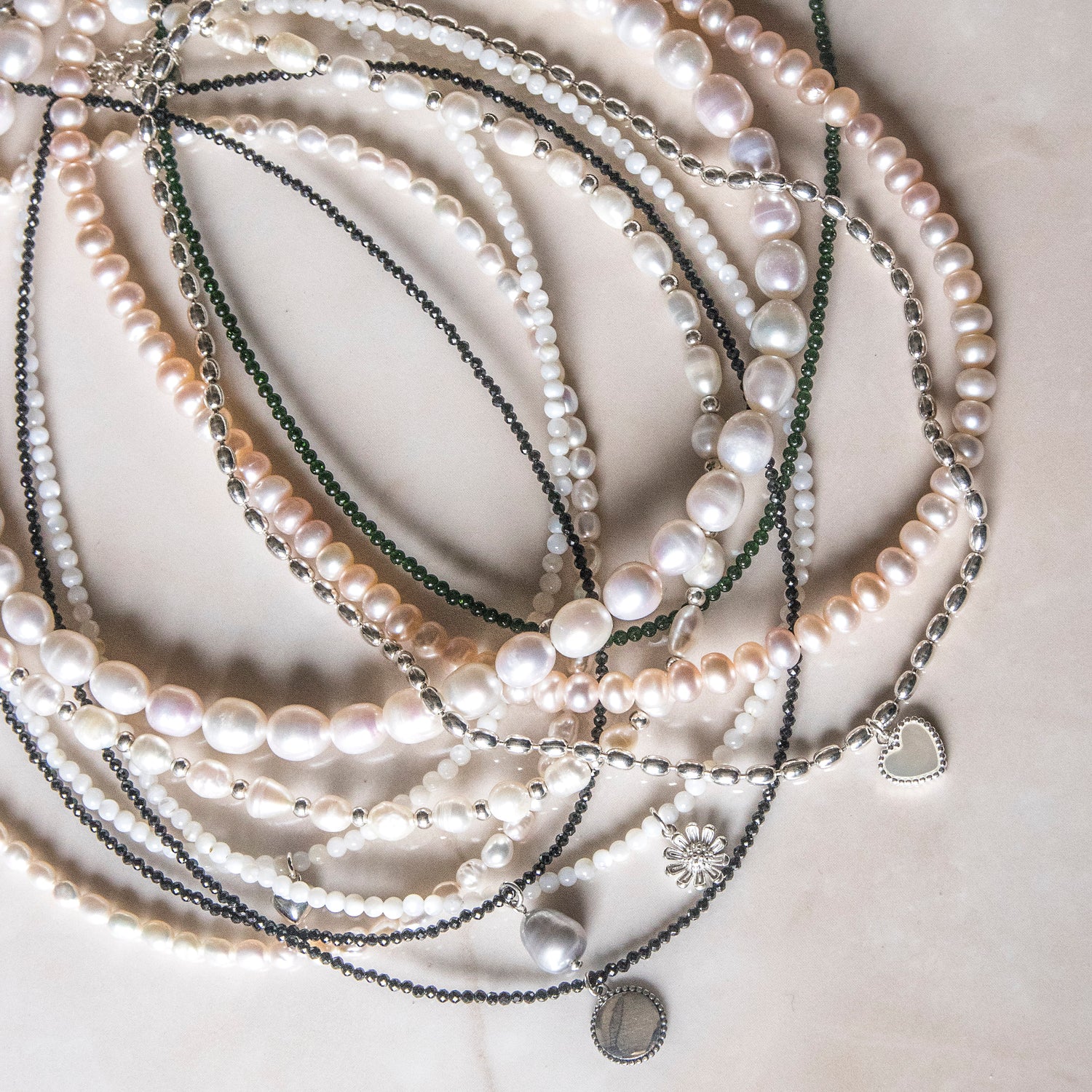 Discover our stunning collection of handcrafted silver jewellery featuring luminous pearls.